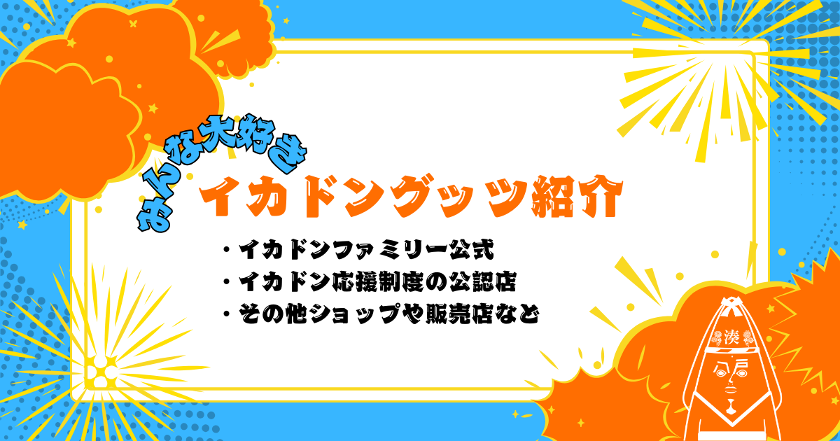※「イカドン応援店制度」は、イカドンを応援するお店・団体を認定する仕組みです。本制度に参加すると「公認店」としてイカドンデザインを使ったグッズ販売やPRを行うことができます。年会費はイカドンの活動資金に充てられます。